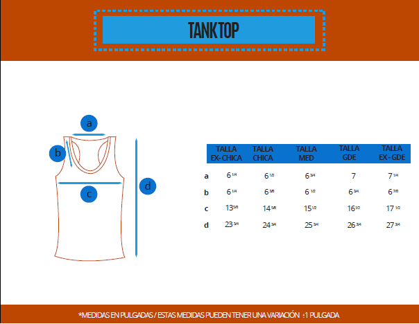 Sólo tienes que dar click en los siguientes link para que te abra la imagen con las medidas de acuerdo a nuestras tallas (Chica, Mediana, Grande y Extra Grande) para que de acuerdo a tu cuerpo, puedas elegir la que más se adecúe a tu estilo de vestir.